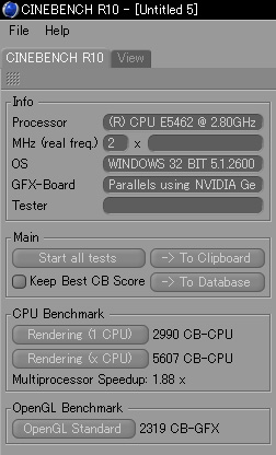 Parallels Desktop 7 のバージョン以外は全て同じ条件。