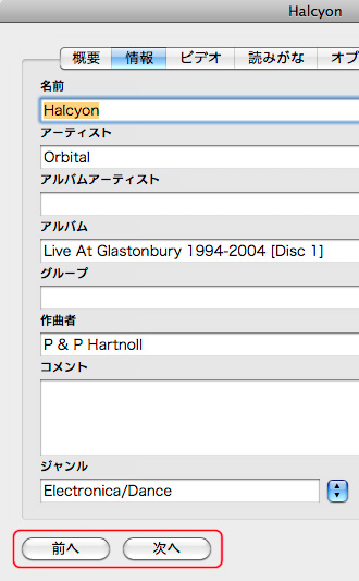 タグを編集してそのまま次の曲、前の曲も編集するときに便利なこのボタン、