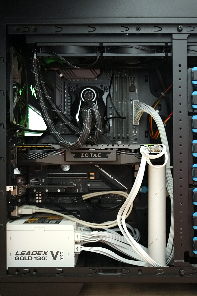 CPUを5950Xに替えてからも、クーラーは忍者 五のままで問題なかったけど、なんとなくで空冷から水冷に替えてみた。