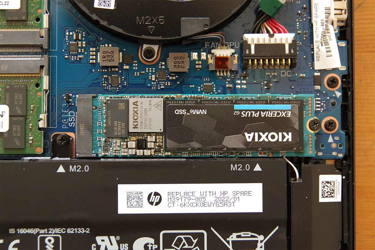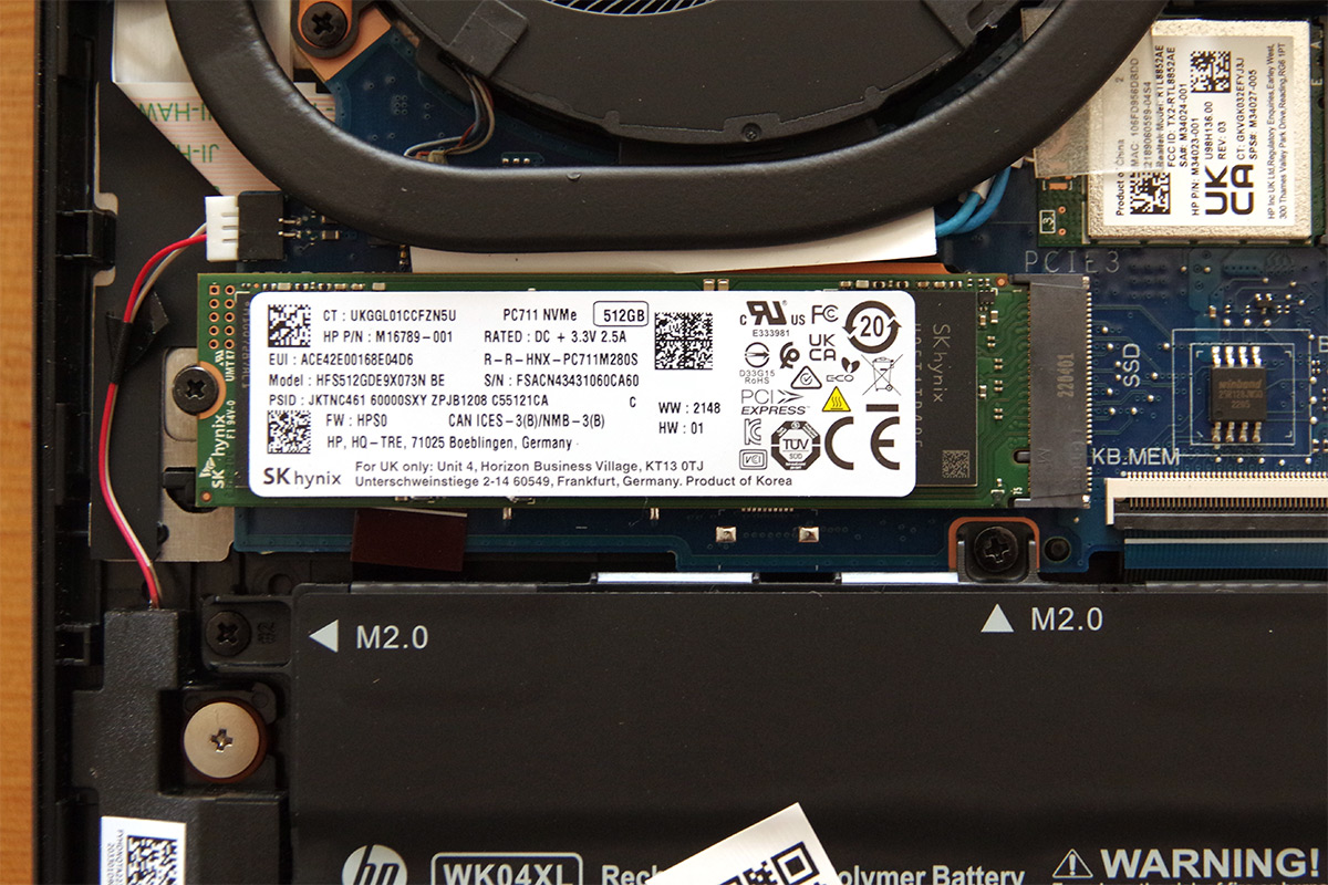 向かって左側にCドライブ入りのM.2 NVMe SSD。容量は512GB。
