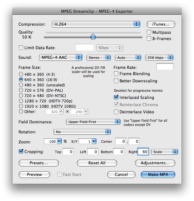 Note however that If you choose the "Destination" cropping mode with a DV frame size, MPEG Streamclip will use "Scale" instead.